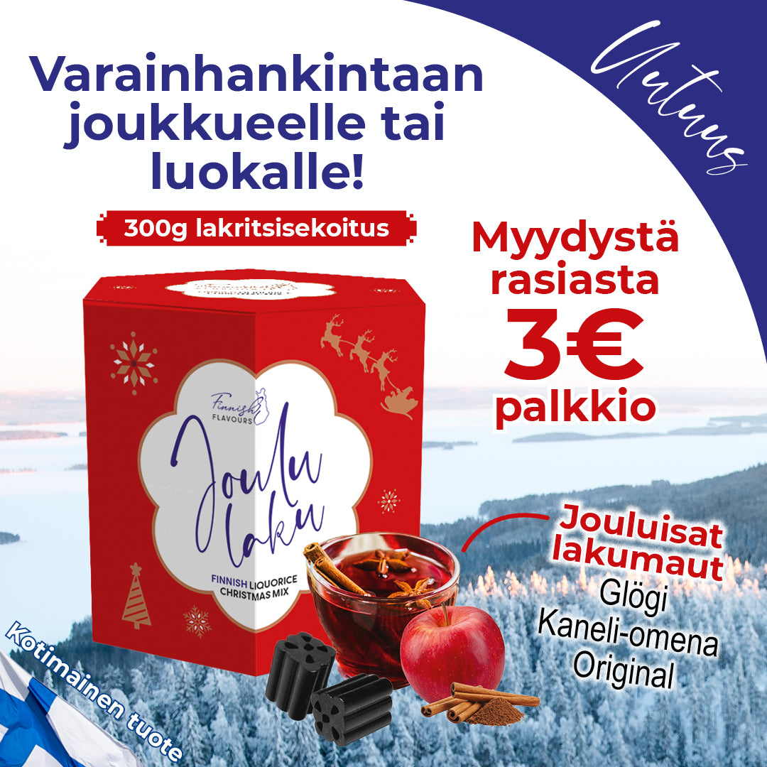 Jätä yhteystietosi jos sinua kiinnostaa kerätä joukkueelle tai luokalle rahaa myymällä joululakuamme. Tuotteessa on hyvä tuotto ja nopea saatavuus. Tämä on oiva joululahja joka varmasti herättää makunystyrät ja mielenkiinnon.